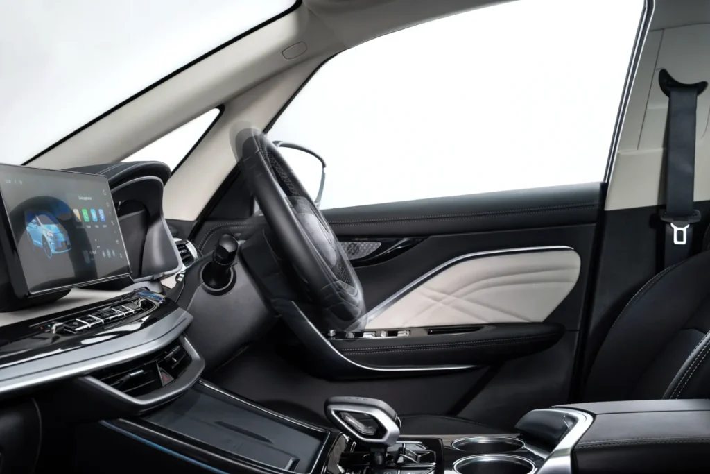 Desain yang elegan & kabin luas. ALETRA L8 EV didesain elegan, exterior memadukan gaya futuristis dengan desain ramping dan kokoh, interior yang lega dan pemilihan material yang berkualitas. Suspensi yang nyaman dengan pengendalian intuitif yang ramah bagi pengemudi. Dengan teknologi canggih, Active Comfort Suspension dapat meredam hantaman saat melewati kondisi jalanan yang tidak rata.